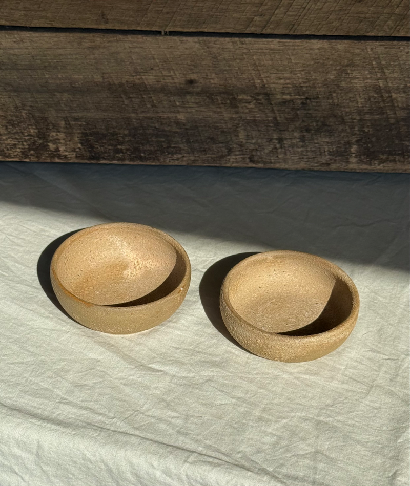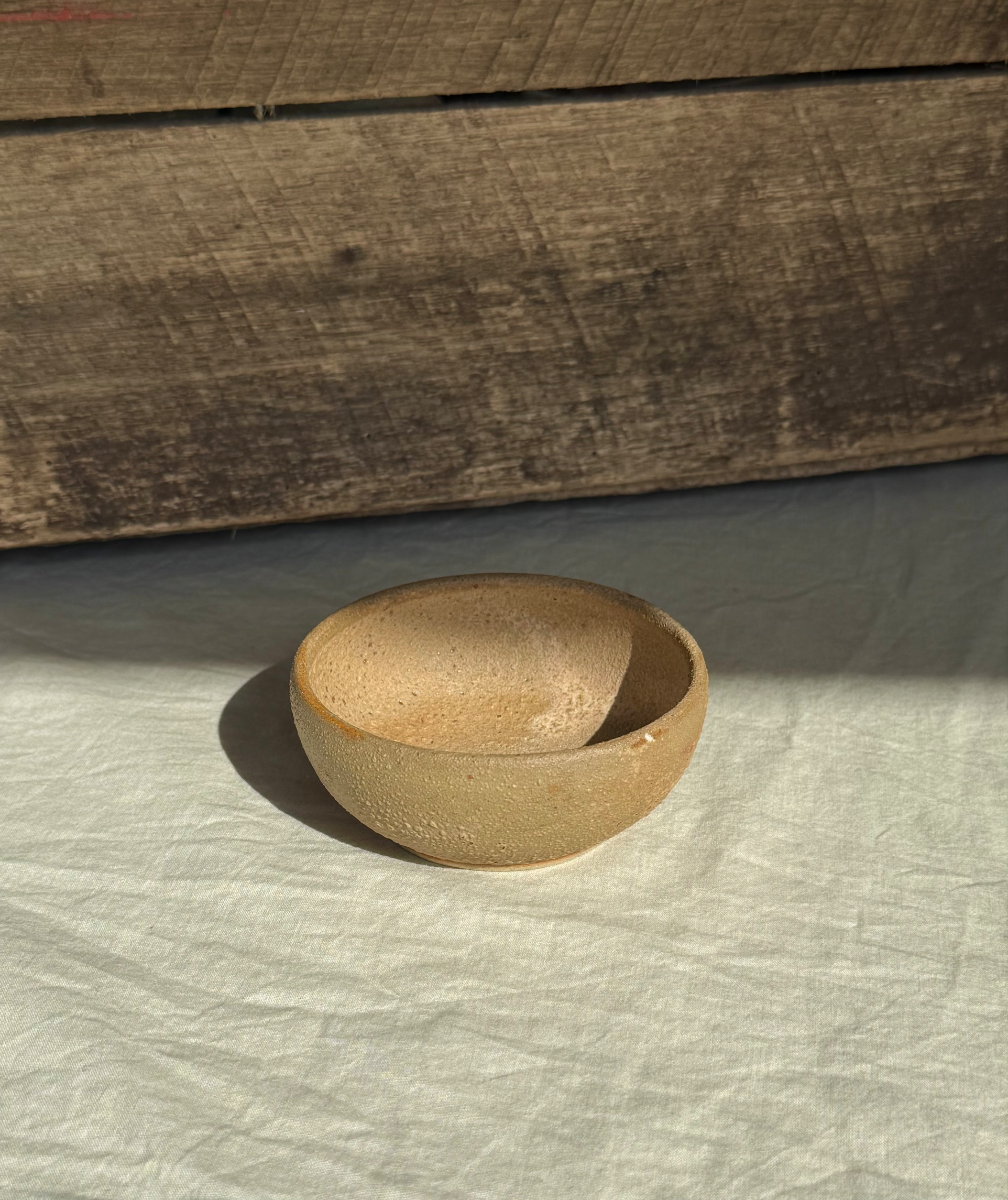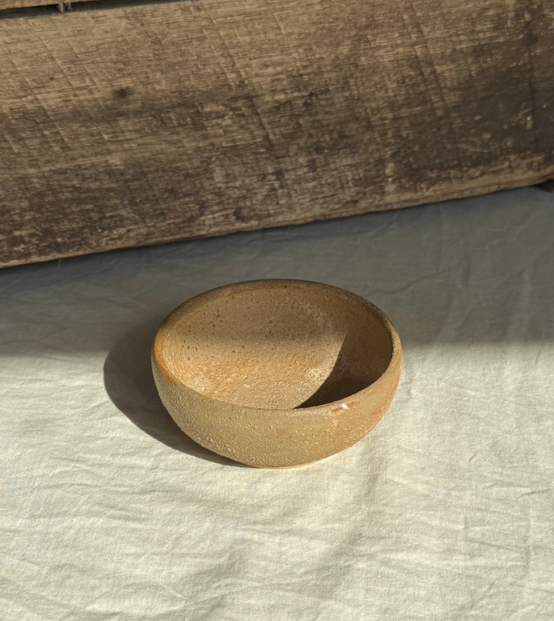 White stoneware and sandstone small shallow bowl