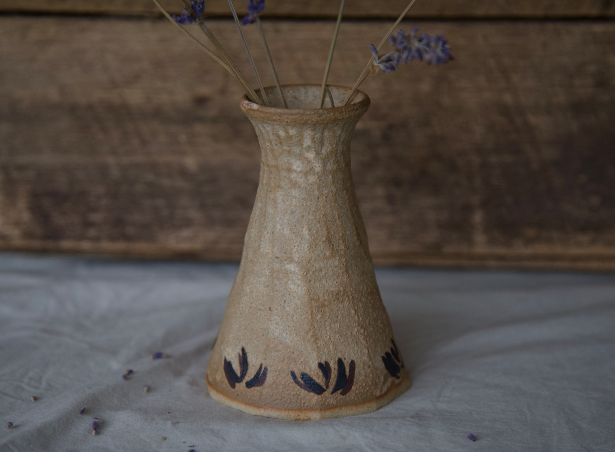 White stoneware vase with sandstone glaze and oxide brushstrokes