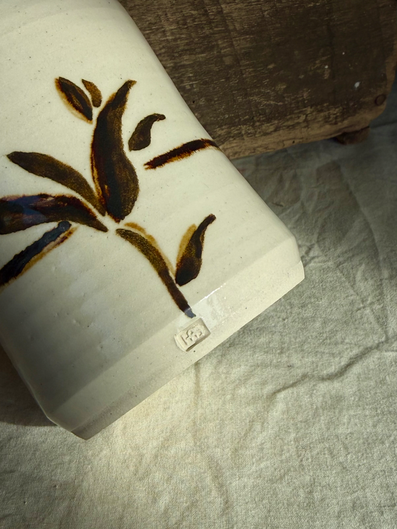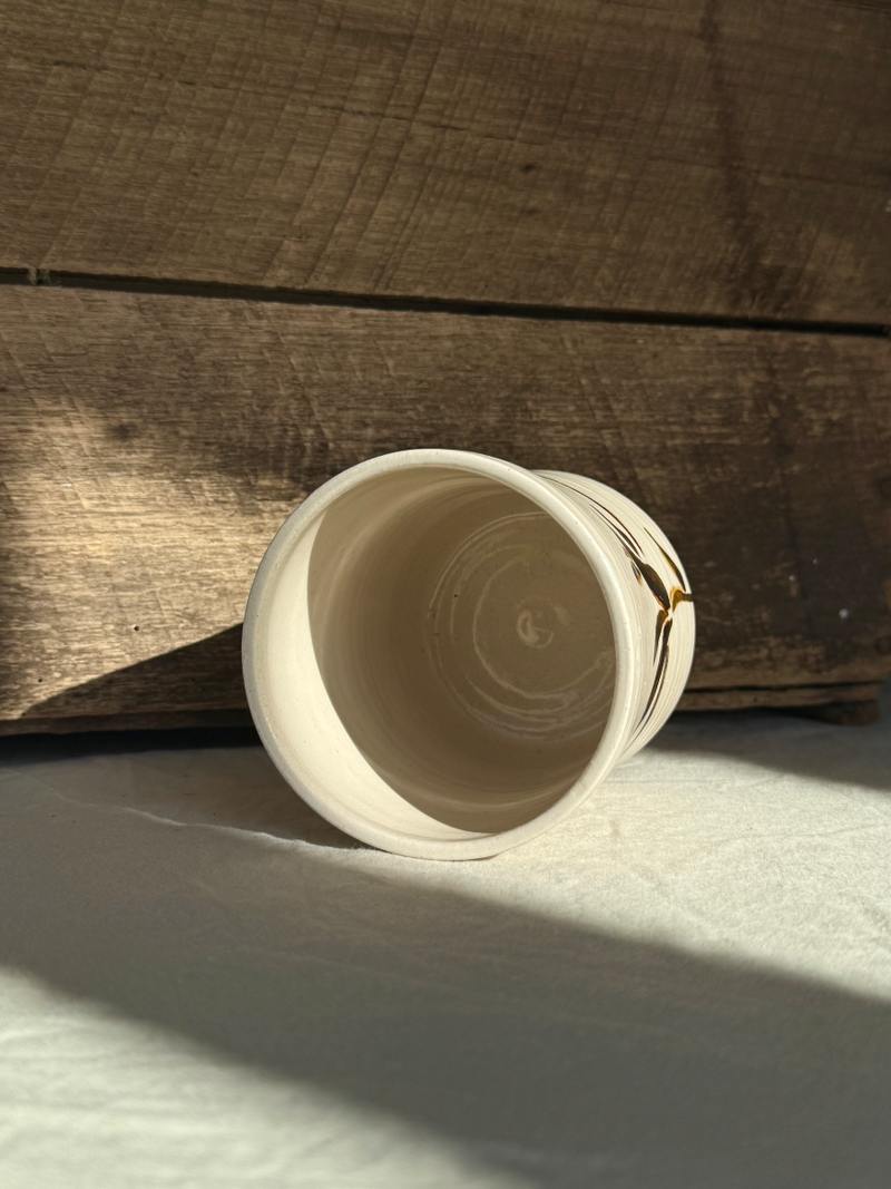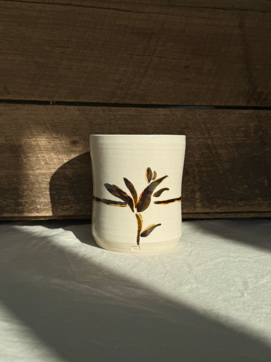 White stoneware and oxide brushstroke tumbler