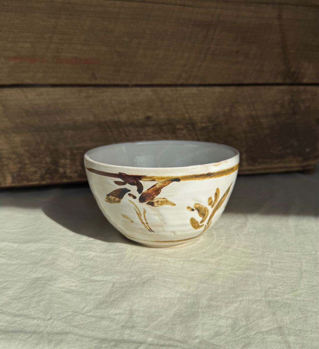 White stoneware and oxide brushstroke bowl
