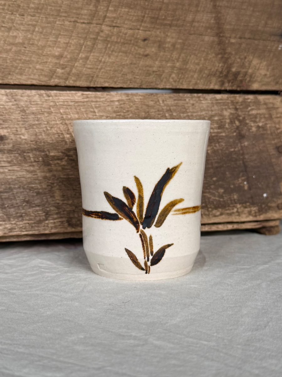 White stoneware and oxide brushstroke tumbler