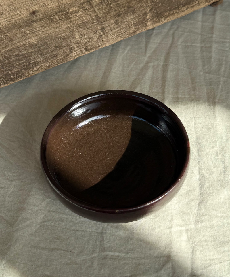 White stoneware and tenmoku shallow bowl