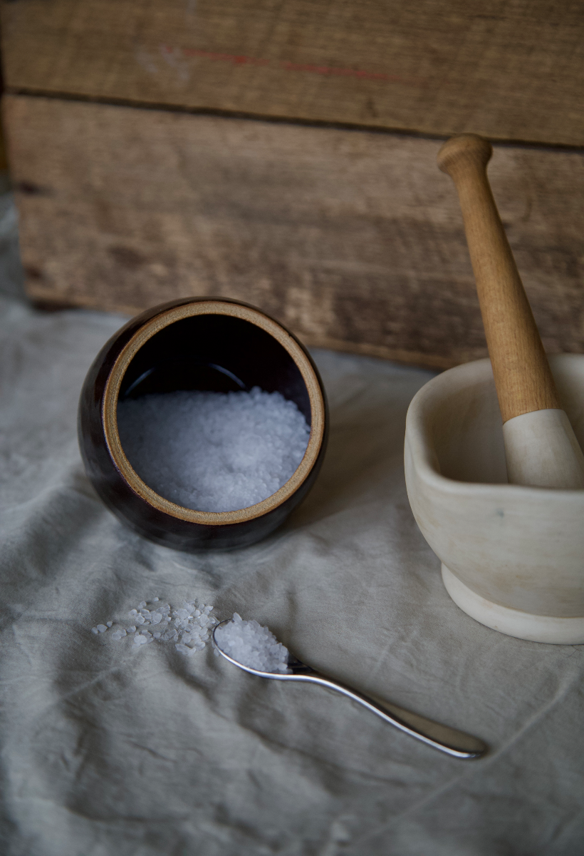 White stoneware and tenmoku glaze salt cellar